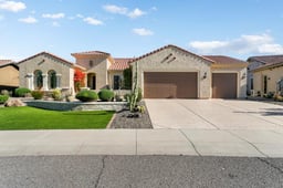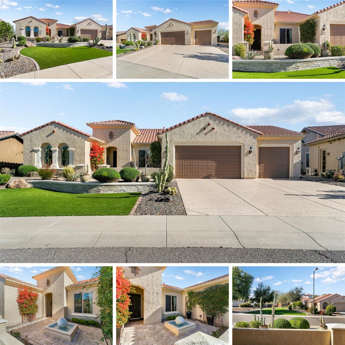 FORMER MODEL HOME WITH A POOL ON A HUGE, PREMIUM GOLF COURSE & LAKEFRONT LOT! The front courtyard w/ modern water feature leads you to the casually elegant design of this floorplan. The home showcases brand new neutral paint, gorgeous wood floors, fireplace, full wet bar & Scenic views of Lake #2. The kitchen is truly a chef's delight, complete w/breakfast and office nook. The spacious primary suite offers striking views, patio access & bath w/tile surround shower and tub along with an extra-large walk-in closet. The den has a beautiful custom built in library. The guest bedroom is ensuite w/ private bath, perfect for visitors. Relax outdoors on your extended patio with sparkling pool, built in barbecue, ramada, mature citrus trees & stellar views of the golf course, lake & mountains!